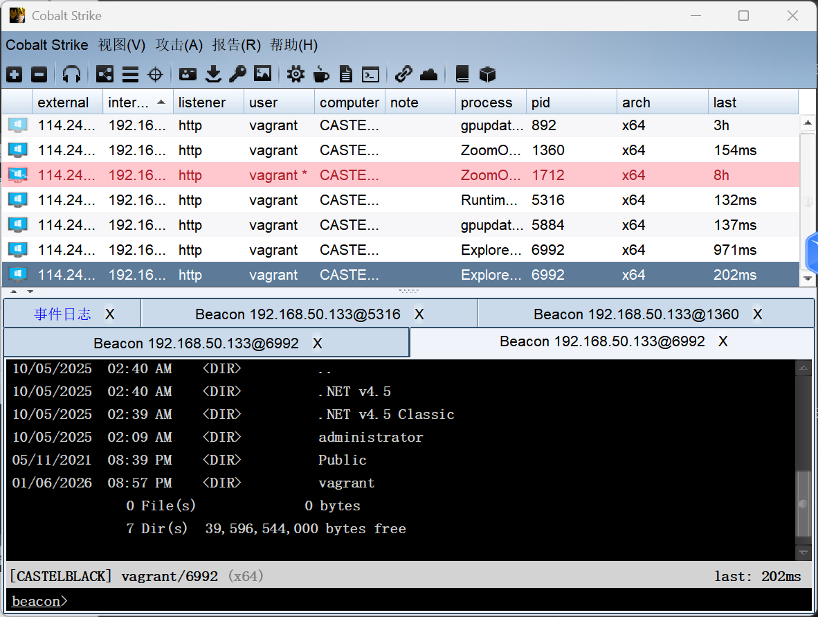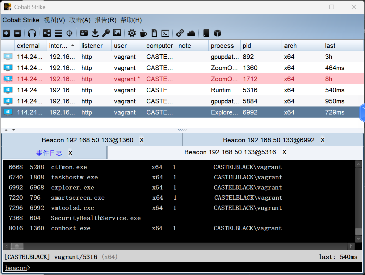 6992 6968 explorer.exe x64 1 CASTELBLACK\vagrant