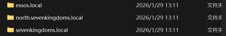 - SEVENKINGDOMS.LOCAL <-> NORTH.SEVENKINGDOMS.LOCAL (父子域,双向信任,SID过滤禁用)